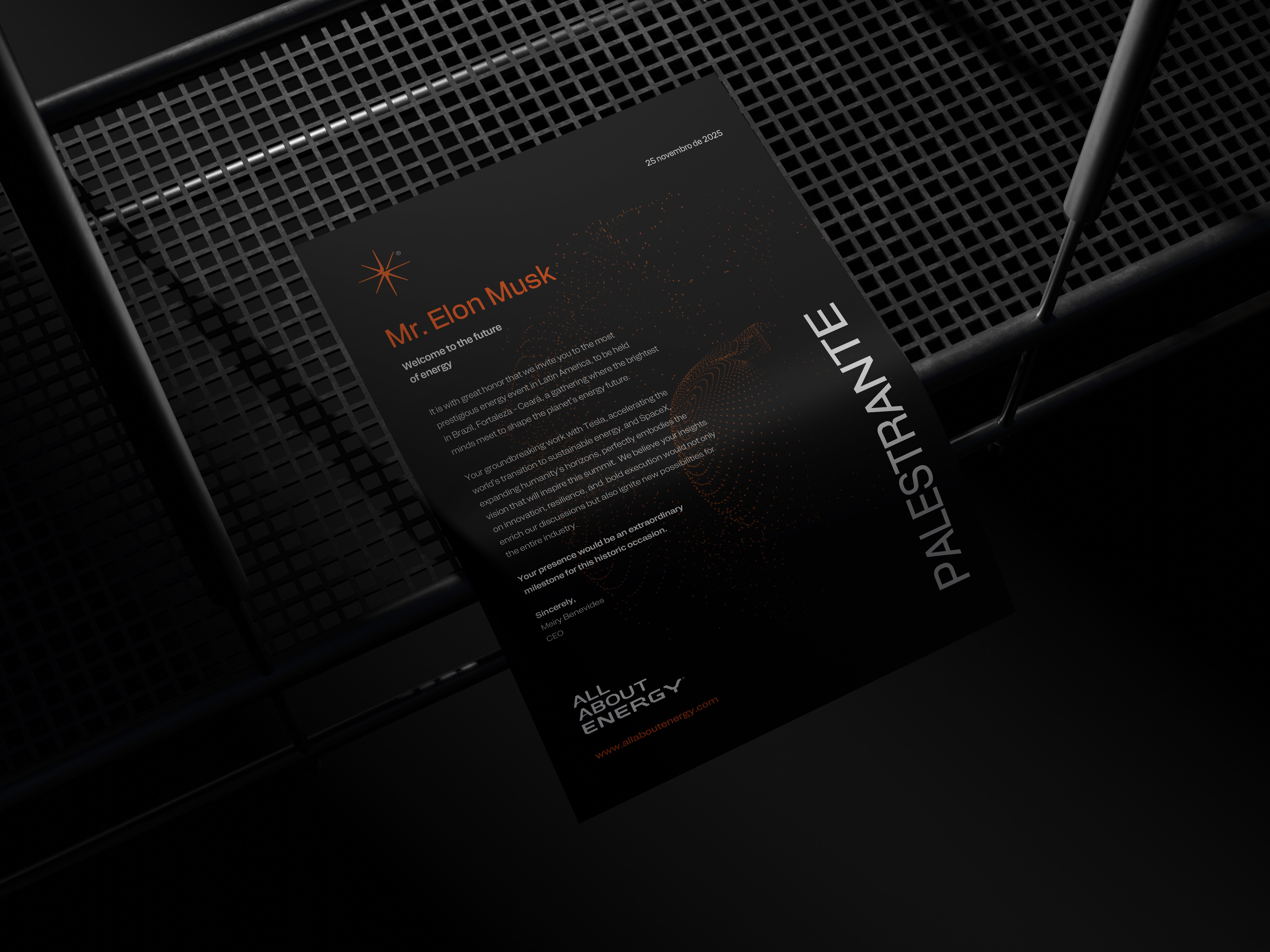 Uma identidade visual disruptiva que rompe com os padrões visuais conservadores do mercado de energia, estabelecendo a All About Energy como uma marca jovem, inovadora e alinhada com o futuro sustentável. A solução criada oferece versatilidade em suas aplicações, mantendo o impacto visual e a personalidade marcante em diferentes contextos - de materiais institucionais a eventos e plataformas digitais - posicionando a marca como protagonista na transformação do mercado energético brasileiro.