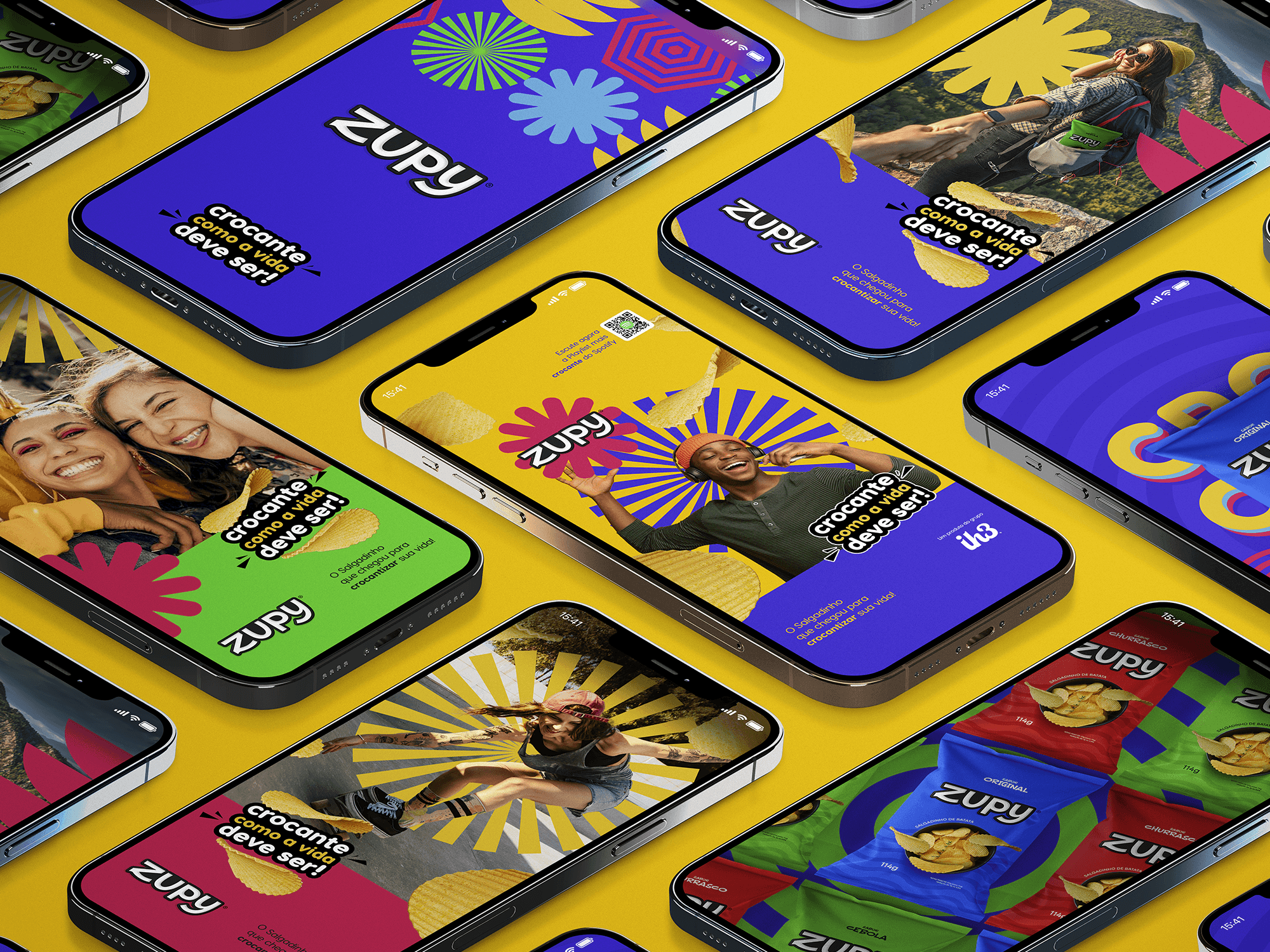 Através de um processo profundo de estratégia e storytelling, reposicionamos a Zupy a partir de um propósito genuíno: celebrar os momentos simples e saborosos do dia a dia. Esse propósito se traduziu no conceito central "Crocante, como a vida deve ser" — uma mensagem que reflete tanto a característica física do produto quanto uma filosofia de vida leve, autêntica e prazerosa. A nova identidade visual reforça a energia vibrante e o espírito divertido que sempre conduziram a marca, agora com uma expressão mais contemporânea e versátil: - Tipografia proprietária que traz personalidade e diferenciação - Formas mais orgânicas que conversam com o produto e transmitem movimento - Paleta cromática otimizada que preserva o DNA alegre das embalagens enquanto aprimora a legibilidade e o impacto nas gôndolas e no ambiente digital